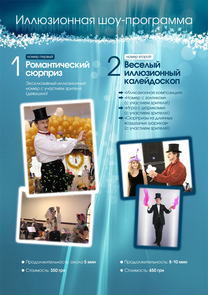 Рекламный проспект, разработанный для фокустика Александра, для презентации номеров.